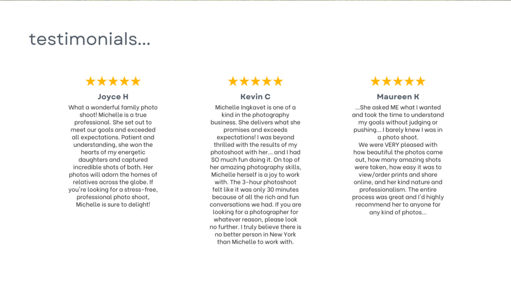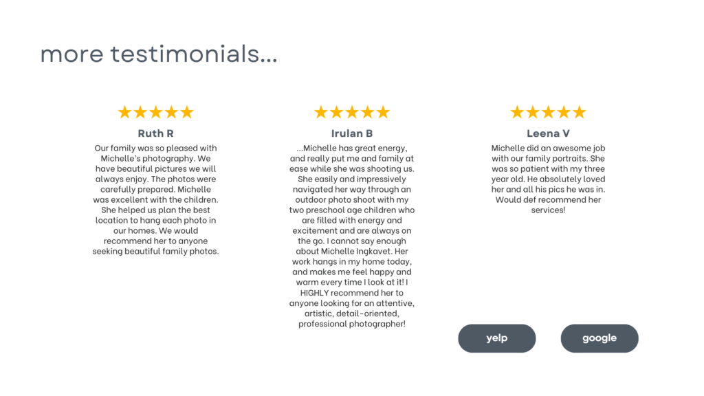 “Michelle was excellent with the children. She helped us plan the best location to hang each photo in our homes.”